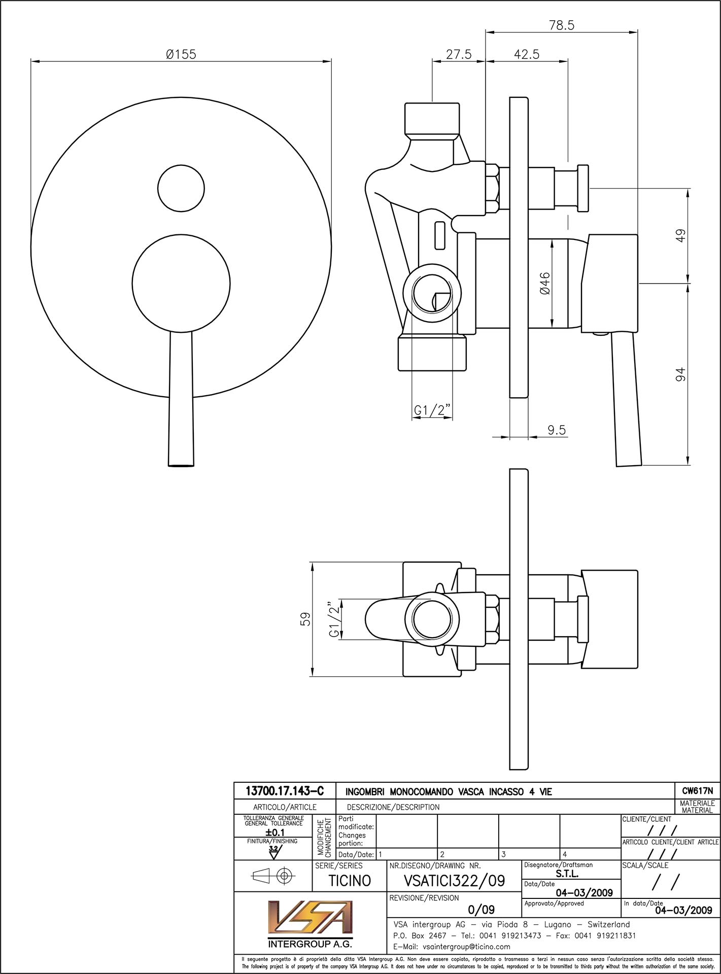 | 1-Weg-Einhebel-Duschmischer, Unterputz TICINO 13700.9.143-C | |